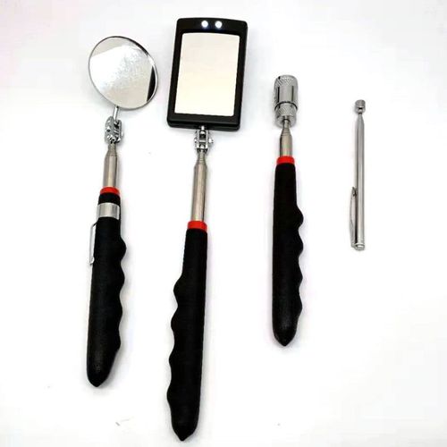 Set of 4 Pieces Strong Magnetic Retractable Pickup Tool with LED Light Mechanic Inspection Mirror